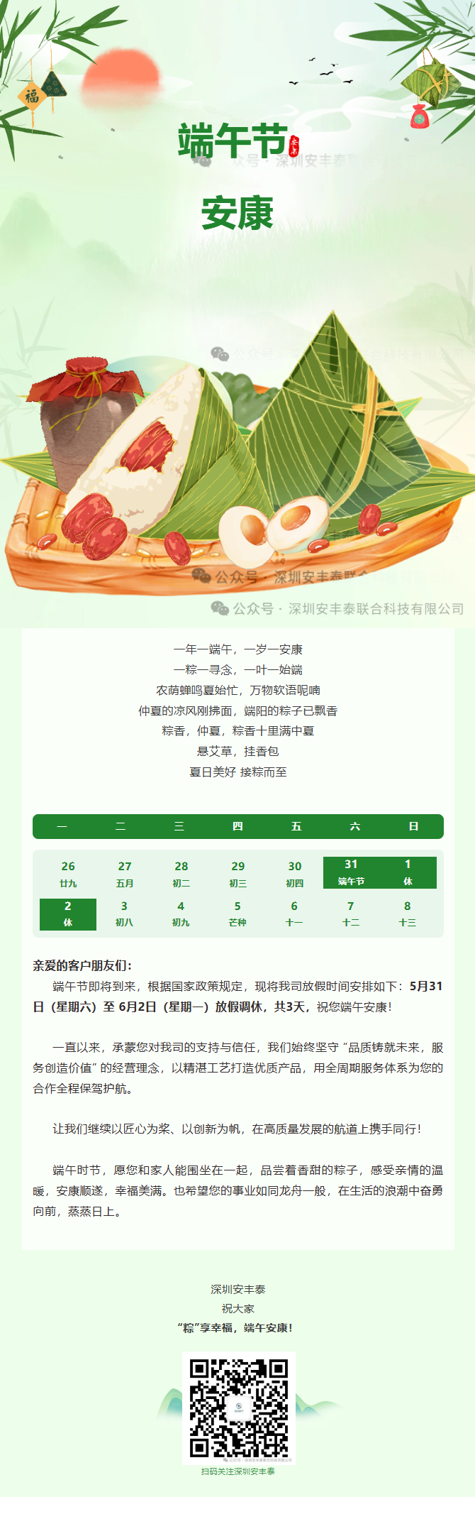 端午安康|我司2025年端午節放假通知安排